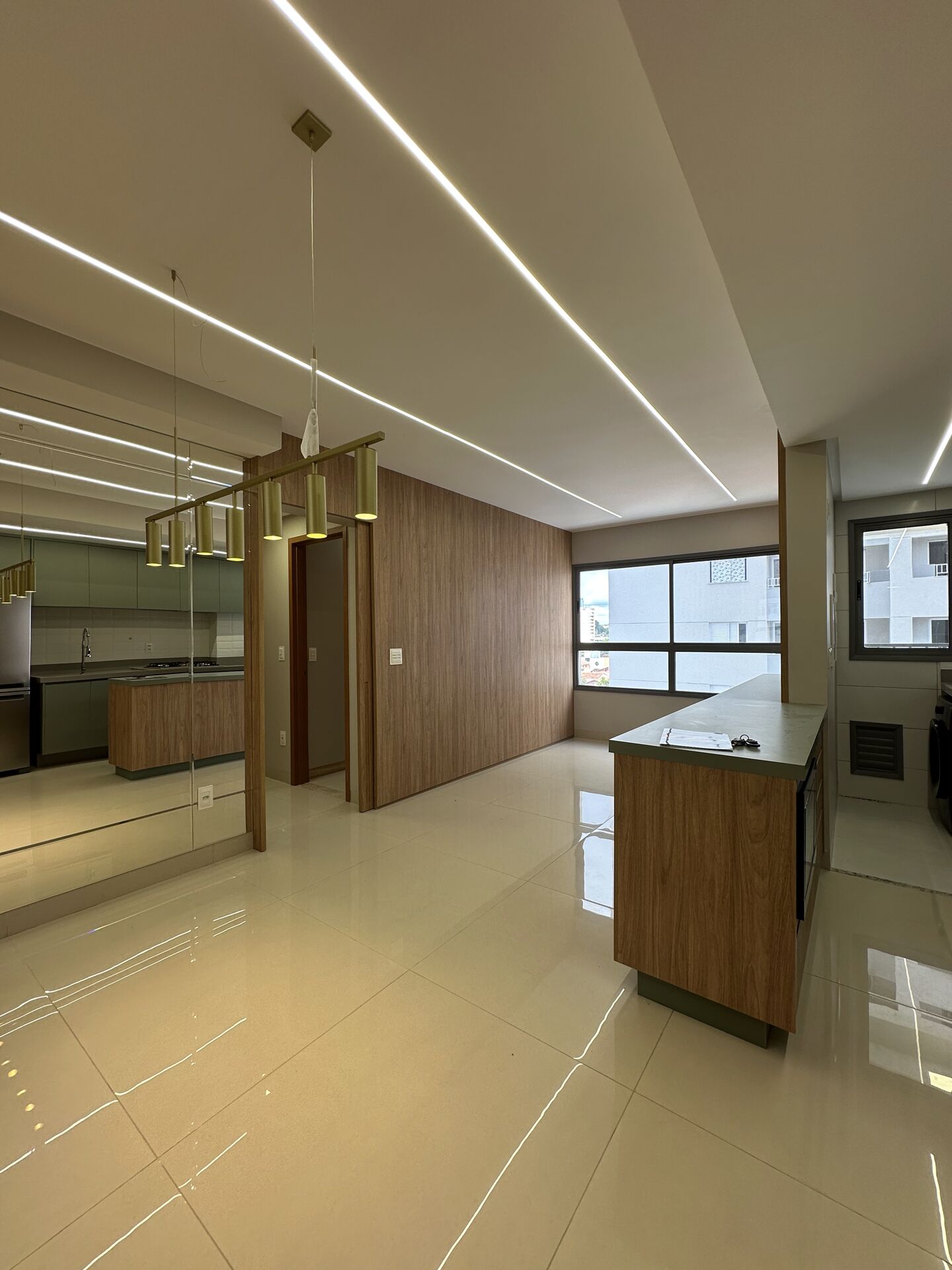 Apartamento com 02 quartos, sendo uma suíte, cozinha americana equipada com Geladeira, Fogão , Forno, Microondas, Lava louças e Maquina de lavar na área de serviço, banheiro e social. Imóvel rico em armários com projeto luminotécnico.