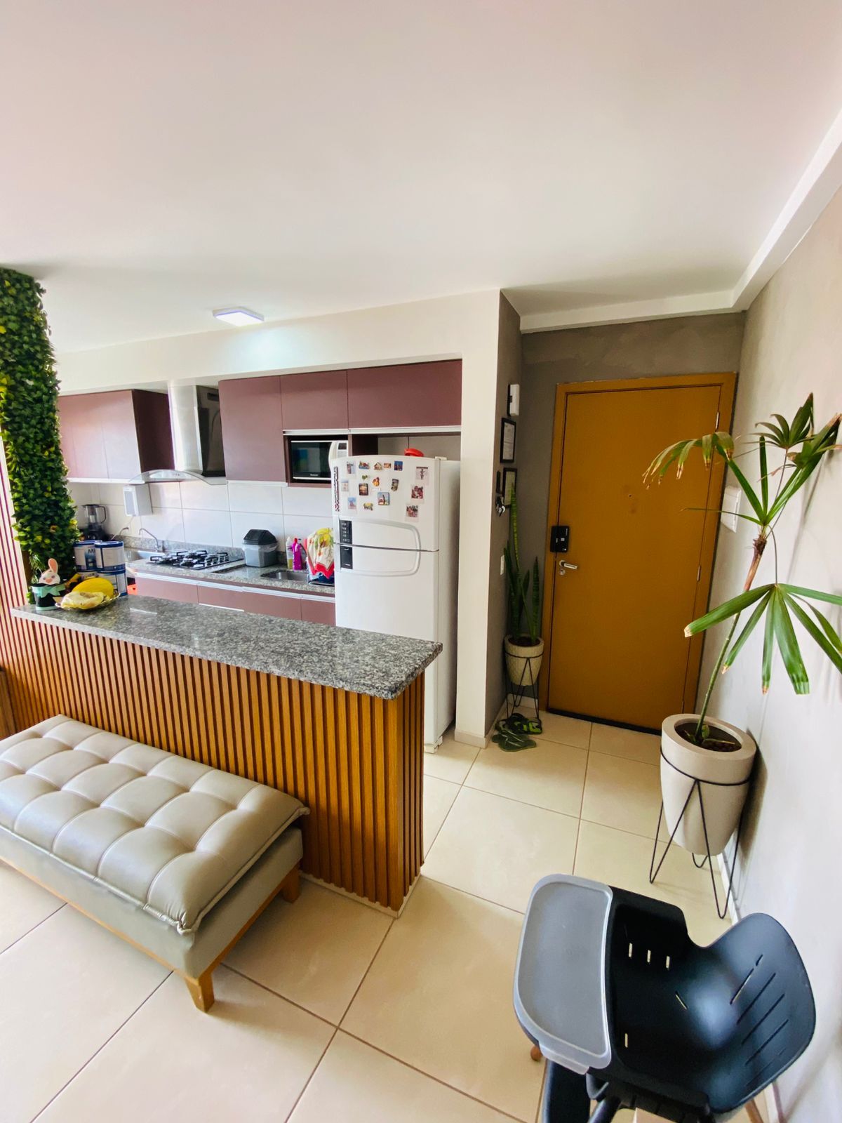São 2 quartos sendo 1 suíte, 2 banheiros, sala, cozinha e sacada rico em armários, em todo apartamento. As cortinas, ar condicionado, fogão cooktop e coifa, ficam no apartamento, Inclusive a cabeceira da cama.