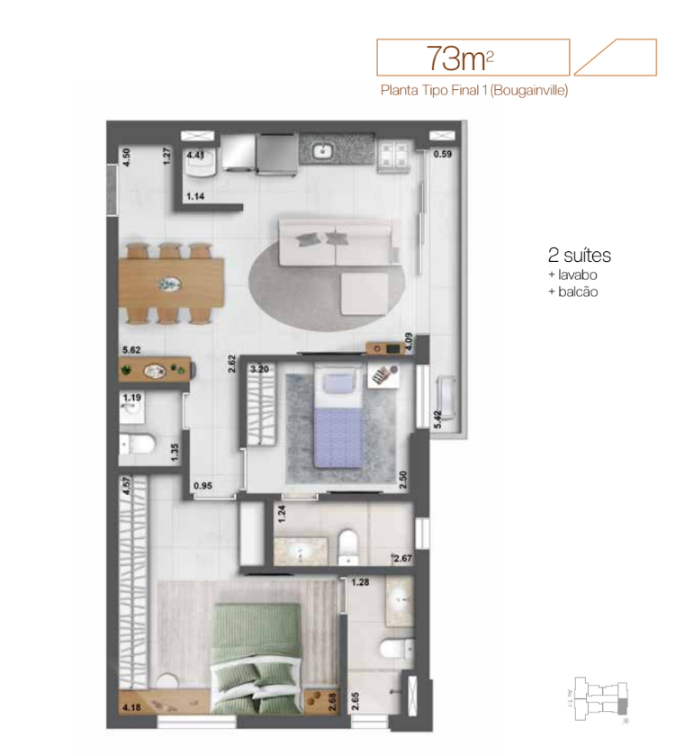 73 m²Previsão de Entrega