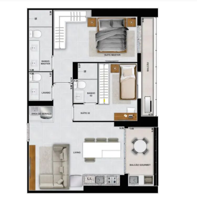 Apartamento na planta com 2 quartos sendo 2 suíte, cozinha, lavabo, área de serviço e varanda gourmet.