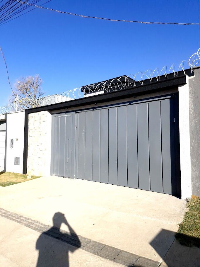 O imóvel dispõe de portão basculante de 4 metros, ampla sala integrada à copa e pé-direito elevado de 4,20 metros, com sanca e iluminação em spots e LED, possui porcelanato acetinado em todos os cômodos e esquadrias em blindex com alumínio preto, a cozinha integrada à área gourmet foi planejada para momentos de convivência, contando com bancadas em mármore Mont Blanc, pia gourmet, porta blindex Light Holder com abertura para dois lados e ponto de gás, proporcionando maior sensação de amplitude e elegância aos ambientes.
