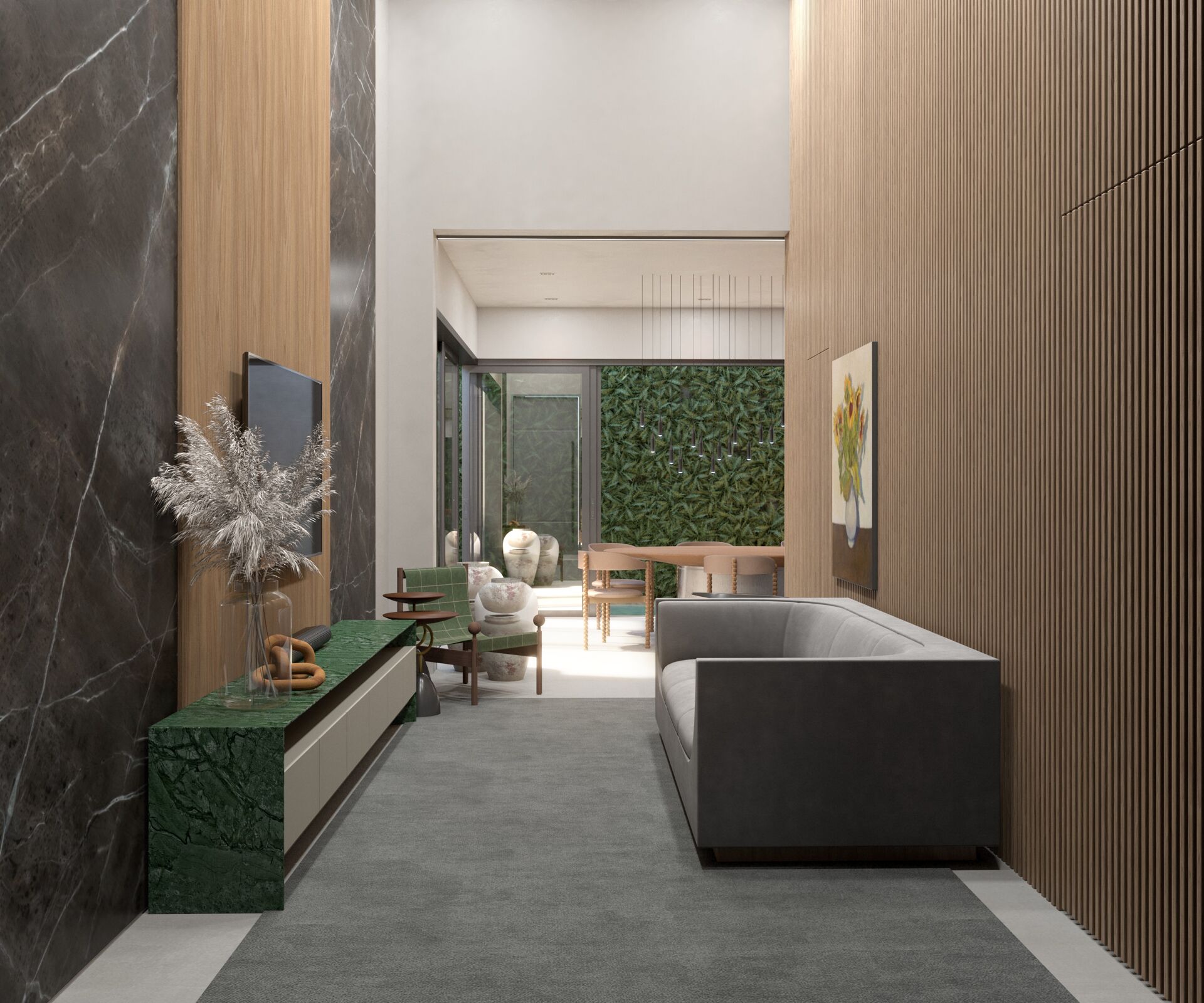 Pé direito duplo nas salas;