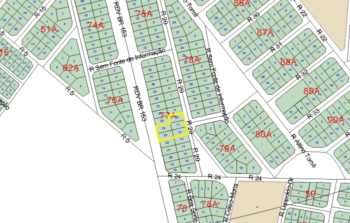 RDV BR-153 Lotes ns 23 e 24 com 450,00m cada com Rua 20 Lotes ns 10, 11 e 12 com 450,00m cada